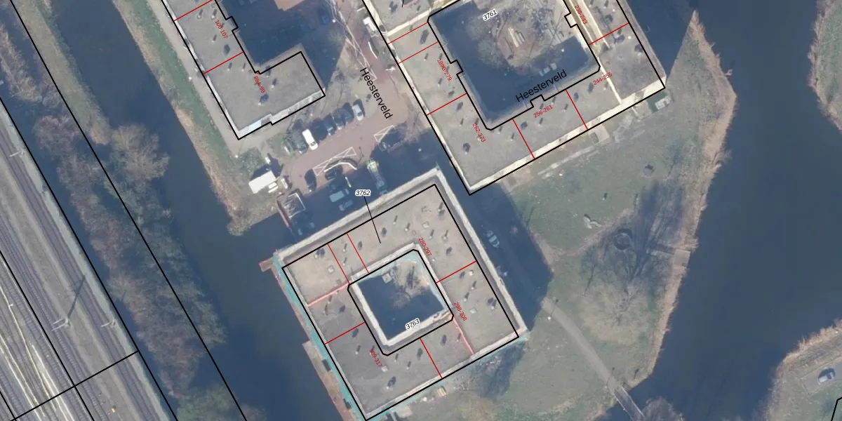 Het perceel waarop Heesterveld 289 staat heeft een oppervlakte van 1348 m². Dit is een zeer groot perceel. De perceeloppervlakte wordt geregistreerd door het Kadaster. Gedetailleerde informatie over de maten van dit perceel kunt u vinden in het rapport Kadastrale kaart met maatvoering van Heesterveld 289.