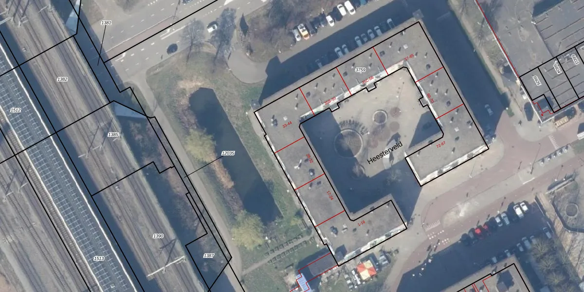 Het perceel waarop Heesterveld 31 staat heeft een oppervlakte van 2085 m². Dit is een zeer groot perceel. De perceeloppervlakte wordt geregistreerd door het Kadaster. Gedetailleerde informatie over de maten van dit perceel kunt u vinden in het rapport Kadastrale kaart met maatvoering van Heesterveld 31.