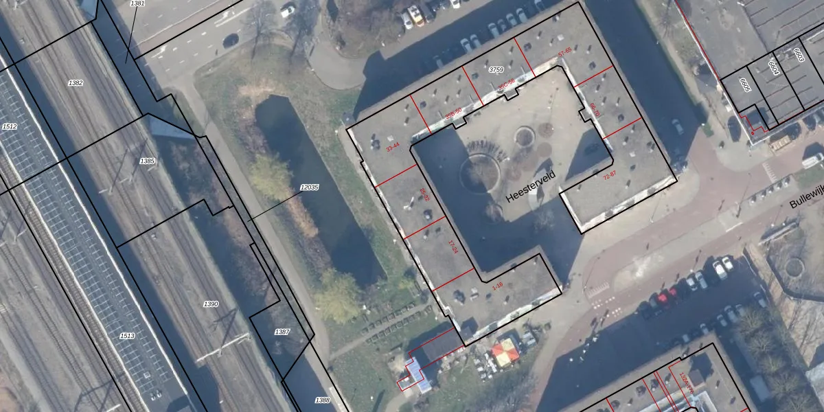 Het perceel waarop Heesterveld 32 staat heeft een oppervlakte van 2085 m². Dit is een zeer groot perceel. De perceeloppervlakte wordt geregistreerd door het Kadaster. Gedetailleerde informatie over de maten van dit perceel kunt u vinden in het rapport Kadastrale kaart met maatvoering van Heesterveld 32.