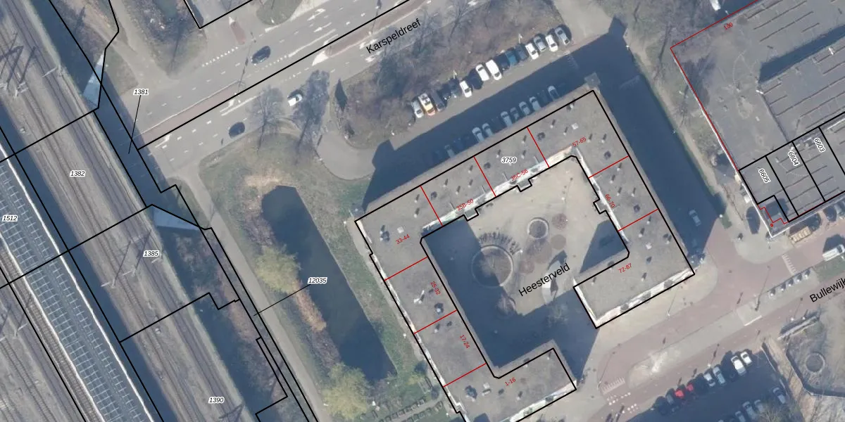 Het perceel waarop Heesterveld 43 staat heeft een oppervlakte van 2085 m². Dit is een zeer groot perceel. De perceeloppervlakte wordt geregistreerd door het Kadaster. Gedetailleerde informatie over de maten van dit perceel kunt u vinden in het rapport Kadastrale kaart met maatvoering van Heesterveld 43.