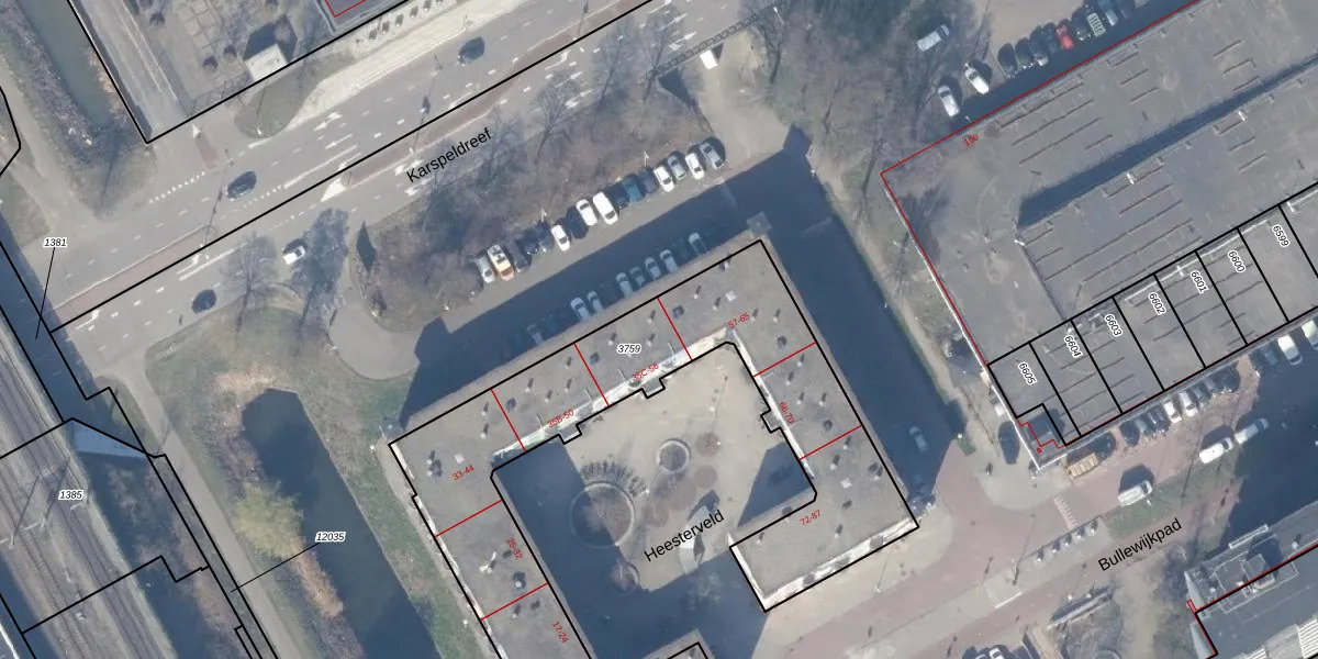Het perceel waarop Heesterveld 55 staat heeft een oppervlakte van 2085 m². Dit is een zeer groot perceel. De perceeloppervlakte wordt geregistreerd door het Kadaster. Gedetailleerde informatie over de maten van dit perceel kunt u vinden in het rapport Kadastrale kaart met maatvoering van Heesterveld 55.