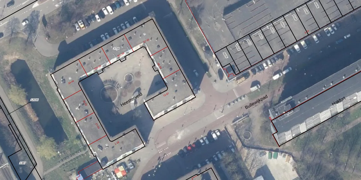 Het perceel waarop Heesterveld 74 staat heeft een oppervlakte van 2085 m². Dit is een zeer groot perceel. De perceeloppervlakte wordt geregistreerd door het Kadaster. Gedetailleerde informatie over de maten van dit perceel kunt u vinden in het rapport Kadastrale kaart met maatvoering van Heesterveld 74.