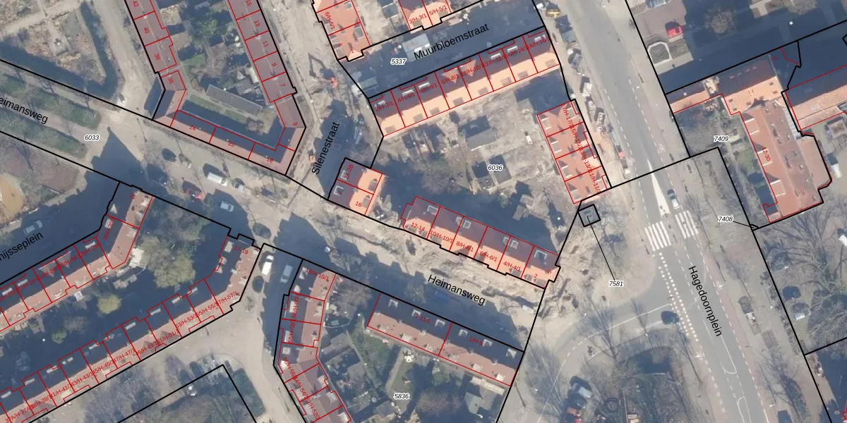 Het perceel waarop Heimansweg 14 staat heeft een oppervlakte van 2366 m². Dit is een zeer groot perceel. De perceeloppervlakte wordt geregistreerd door het Kadaster. Gedetailleerde informatie over de maten van dit perceel kunt u vinden in het rapport Kadastrale kaart met maatvoering van Heimansweg 14.