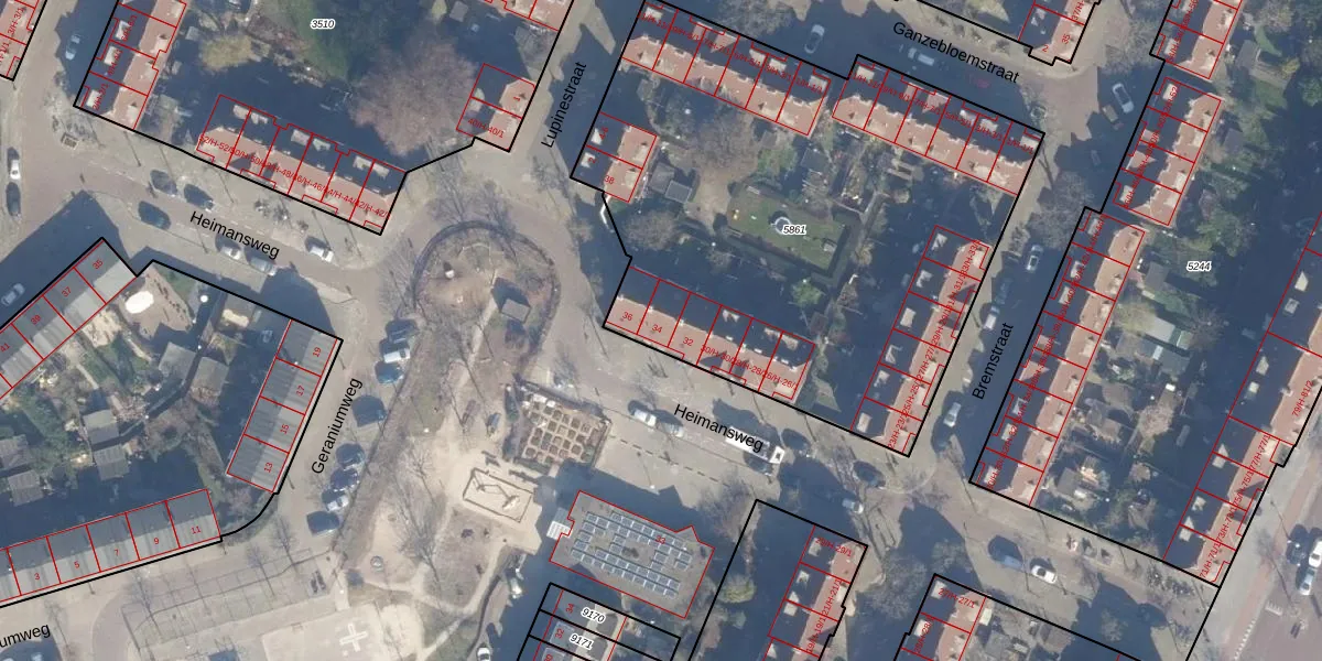 Het perceel waarop Heimansweg 34 staat heeft een oppervlakte van 3021 m². Dit is een zeer groot perceel. De perceeloppervlakte wordt geregistreerd door het Kadaster. Gedetailleerde informatie over de maten van dit perceel kunt u vinden in het rapport Kadastrale kaart met maatvoering van Heimansweg 34.