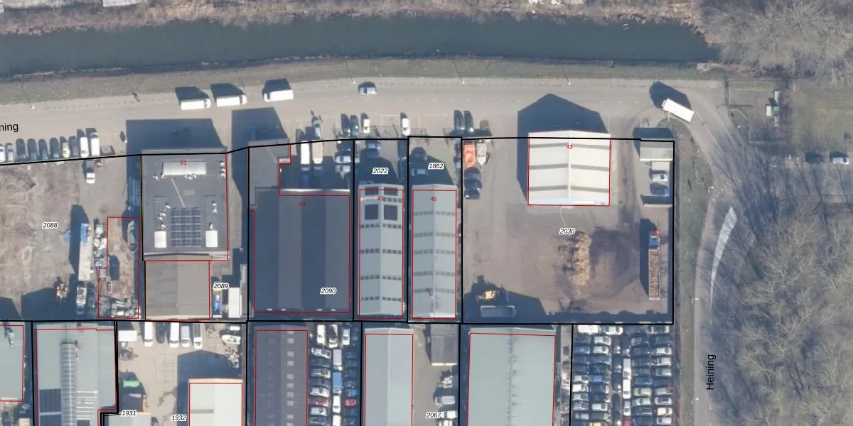 Het perceel waarop Heining 45 staat heeft een oppervlakte van 556 m². Dit is een groot perceel. De perceeloppervlakte wordt geregistreerd door het Kadaster. Gedetailleerde informatie over de maten van dit perceel kunt u vinden in het rapport Kadastrale kaart met maatvoering van Heining 45.