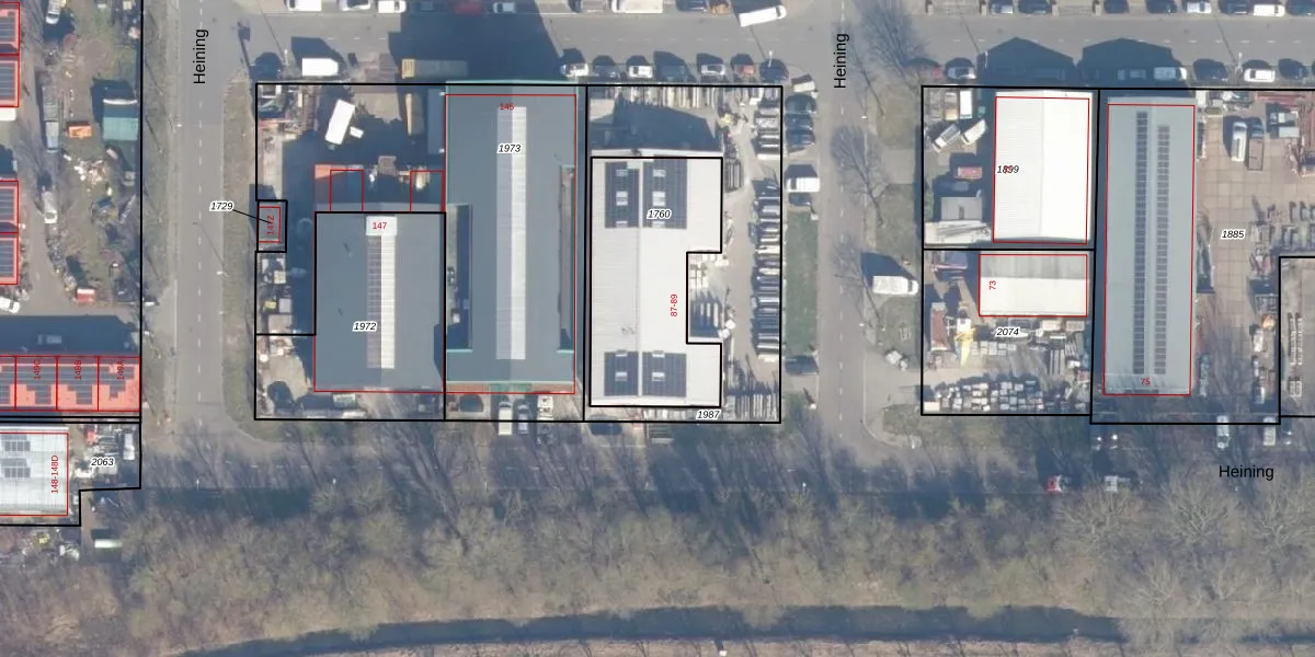 Het perceel waarop Heining 87 staat heeft een oppervlakte van 681 m². Dit is een groot perceel. De perceeloppervlakte wordt geregistreerd door het Kadaster. Gedetailleerde informatie over de maten van dit perceel kunt u vinden in het rapport Kadastrale kaart met maatvoering van Heining 87.