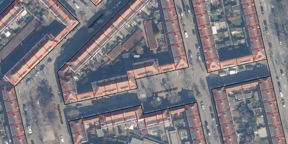 Het perceel waarop Heliotroopstraat 22 staat heeft een oppervlakte van 4158 m². Dit is een zeer groot perceel. De perceeloppervlakte wordt geregistreerd door het Kadaster. Gedetailleerde informatie over de maten van dit perceel kunt u vinden in het rapport Kadastrale kaart met maatvoering van Heliotroopstraat 22.