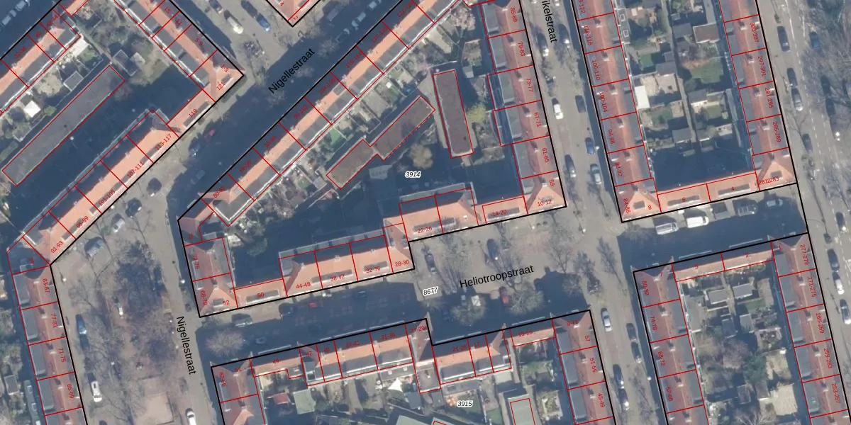 Het perceel waarop Heliotroopstraat 24 staat heeft een oppervlakte van 4158 m². Dit is een zeer groot perceel. De perceeloppervlakte wordt geregistreerd door het Kadaster. Gedetailleerde informatie over de maten van dit perceel kunt u vinden in het rapport Kadastrale kaart met maatvoering van Heliotroopstraat 24.
