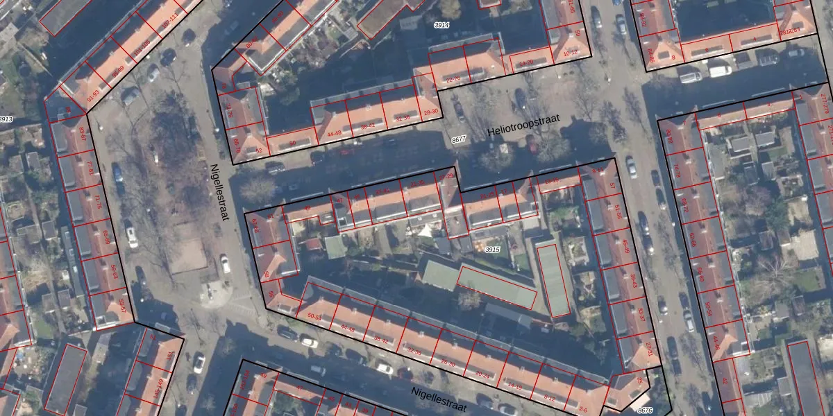 Het perceel waarop Heliotroopstraat 33 staat heeft een oppervlakte van 4158 m². Dit is een zeer groot perceel. De perceeloppervlakte wordt geregistreerd door het Kadaster. Gedetailleerde informatie over de maten van dit perceel kunt u vinden in het rapport Kadastrale kaart met maatvoering van Heliotroopstraat 33.