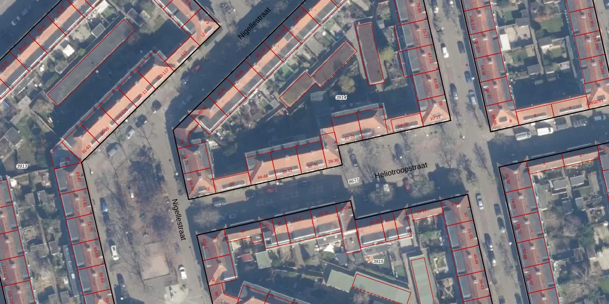 Het perceel waarop Heliotroopstraat 36 staat heeft een oppervlakte van 4158 m². Dit is een zeer groot perceel. De perceeloppervlakte wordt geregistreerd door het Kadaster. Gedetailleerde informatie over de maten van dit perceel kunt u vinden in het rapport Kadastrale kaart met maatvoering van Heliotroopstraat 36.