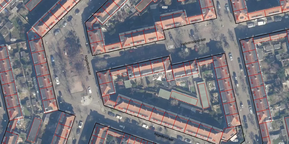 Het perceel waarop Heliotroopstraat 39 staat heeft een oppervlakte van 4158 m². Dit is een zeer groot perceel. De perceeloppervlakte wordt geregistreerd door het Kadaster. Gedetailleerde informatie over de maten van dit perceel kunt u vinden in het rapport Kadastrale kaart met maatvoering van Heliotroopstraat 39.