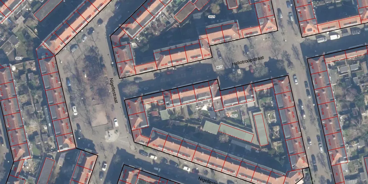 Het perceel waarop Heliotroopstraat 41 staat heeft een oppervlakte van 4158 m². Dit is een zeer groot perceel. De perceeloppervlakte wordt geregistreerd door het Kadaster. Gedetailleerde informatie over de maten van dit perceel kunt u vinden in het rapport Kadastrale kaart met maatvoering van Heliotroopstraat 41.