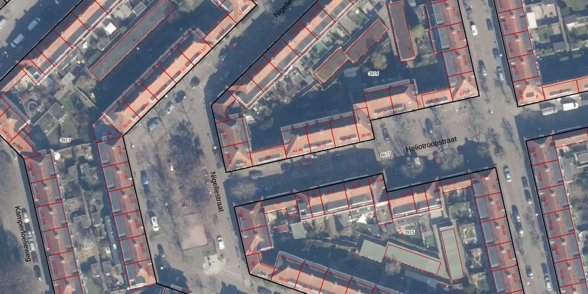 Het perceel waarop Heliotroopstraat 48 staat heeft een oppervlakte van 4158 m². Dit is een zeer groot perceel. De perceeloppervlakte wordt geregistreerd door het Kadaster. Gedetailleerde informatie over de maten van dit perceel kunt u vinden in het rapport Kadastrale kaart met maatvoering van Heliotroopstraat 48.
