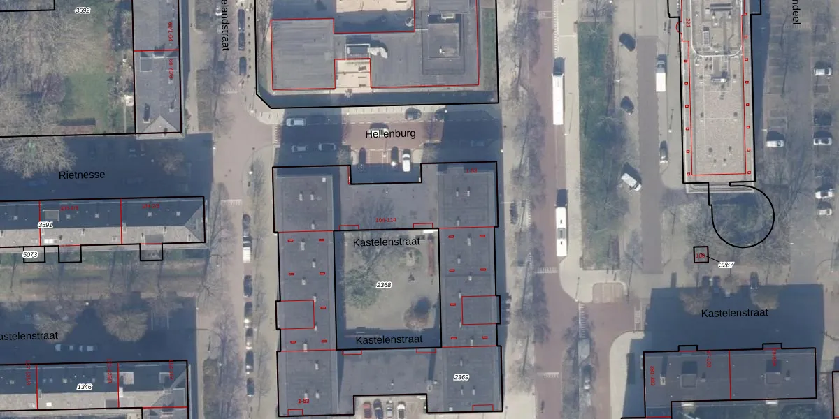 Het perceel waarop Hellenburg 45 staat heeft een oppervlakte van 2278 m². Dit is een zeer groot perceel. De perceeloppervlakte wordt geregistreerd door het Kadaster. Gedetailleerde informatie over de maten van dit perceel kunt u vinden in het rapport Kadastrale kaart met maatvoering van Hellenburg 45.