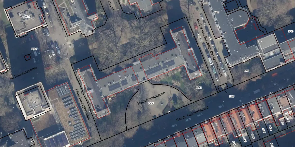 Het perceel waarop Helmersplantsoen 4 staat heeft een oppervlakte van 3295 m². Dit is een zeer groot perceel. De perceeloppervlakte wordt geregistreerd door het Kadaster. Gedetailleerde informatie over de maten van dit perceel kunt u vinden in het rapport Kadastrale kaart met maatvoering van Helmersplantsoen 4.