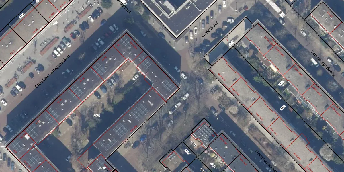 Het perceel waarop Helmholtzstraat 62-2 staat heeft een oppervlakte van 4767 m². Dit is een zeer groot perceel. De perceeloppervlakte wordt geregistreerd door het Kadaster. Gedetailleerde informatie over de maten van dit perceel kunt u vinden in het rapport Kadastrale kaart met maatvoering van Helmholtzstraat 62-2.