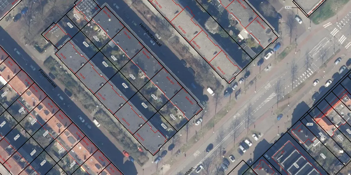 Het perceel waarop Helmholtzstraat 82-2 staat heeft een oppervlakte van 319 m². Dit is een groot perceel. De perceeloppervlakte wordt geregistreerd door het Kadaster. Gedetailleerde informatie over de maten van dit perceel kunt u vinden in het rapport Kadastrale kaart met maatvoering van Helmholtzstraat 82-2.