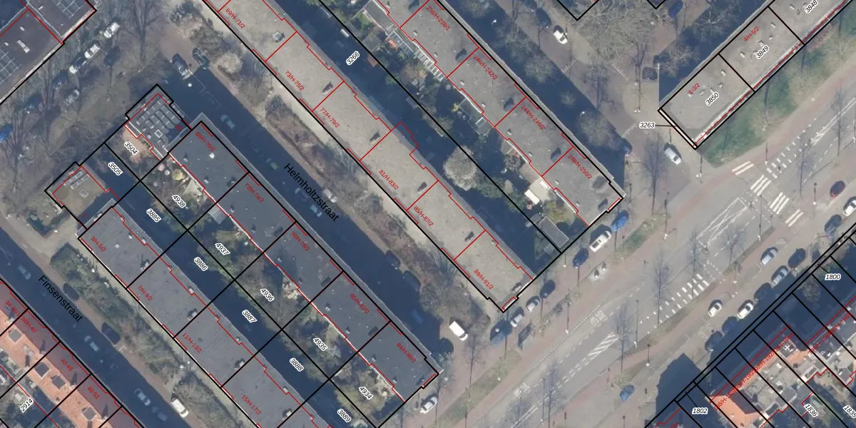 Het perceel waarop Helmholtzstraat 85-1 staat heeft een oppervlakte van 2236 m². Dit is een zeer groot perceel. De perceeloppervlakte wordt geregistreerd door het Kadaster. Gedetailleerde informatie over de maten van dit perceel kunt u vinden in het rapport Kadastrale kaart met maatvoering van Helmholtzstraat 85-1.