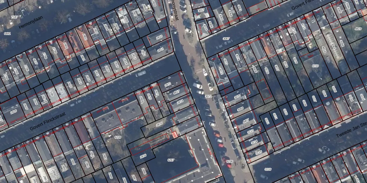Het perceel waarop Hemonystraat 20-H staat heeft een oppervlakte van 87 m². Dit is een klein perceel. De perceeloppervlakte wordt geregistreerd door het Kadaster. Gedetailleerde informatie over de maten van dit perceel kunt u vinden in het rapport Kadastrale kaart met maatvoering van Hemonystraat 20-H.
