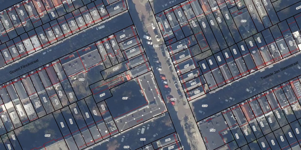 Het adres ligt op het perceel ASD14-R-6267, dat zich in de kadastrale gemeente Amsterdam bevindt. De oppervlakte van het perceel is 1033 m². Dat is groter dan gemiddeld in Amsterdam, waar de gemiddelde perceeloppervlakte op 354,38 m² ligt. De grootste perceeloppervlakte in de kadastrale gemeente is 9,9 ha. De kleinste oppervlakte bedraagt 0 m². Op het perceel liggen in totaal 28 adressen. In de Basisregistratie Kadaster (BRK) werden de grenzen van het perceel geregistreerd op 30-10-2006.