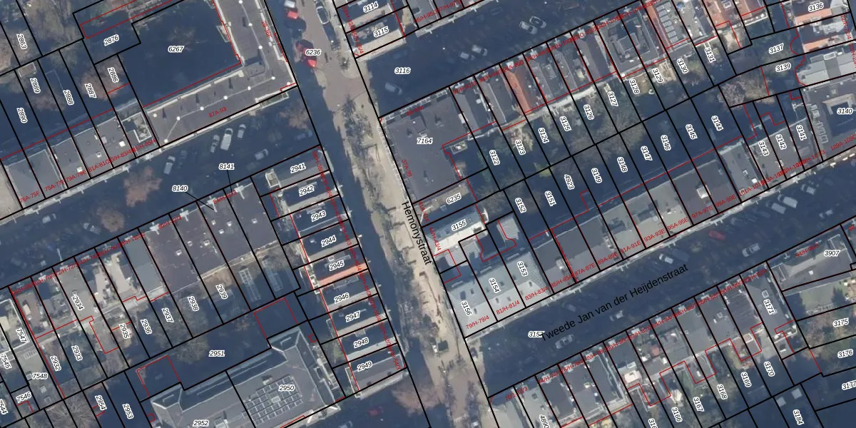 Het adres is gelegen op perceel 6235 in de sectie R en de kadastrale gemeente Amsterdam. De kadastrale aanduiding is aldus ASD14-R-6235. Het perceel is 120 m² groot. Dat is kleiner dan de gemiddelde perceeloppervlakte in Amsterdam, dat op 354,38 m² ligt. Het grootste perceel in de kadastrale gemeente is 9,9 ha. Het kleinste perceel heeft een oppervlakte van 0 m². Op het perceel zijn 9 adressen aanwezig. In de Basisregistratie Kadaster (BRK) werden de grenzen van het perceel geregistreerd op 14-03-2023.