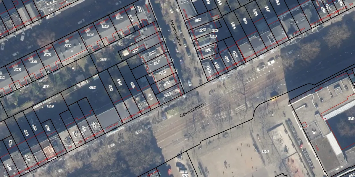 Het perceel waarop het adres ligt is ASD14-R-2996. De afkorting 'ASD14' staat voor kadastrale gemeente Amsterdam. Het perceel is kleiner dan gemiddeld in Amsterdam. Het perceel is 105 m² groot, terwijl het gemiddelde ligt op 354,38 m². Het grootste perceel in de kadastrale gemeente is 9,9 ha. Het kleinste perceel heeft een oppervlakte van 0 m². Op het perceel liggen in totaal 5 adressen. De huidige grenzen van het perceel zijn digitaal in de Basisregistratie Kadaster (BRK) geregistreerd op 30-10-2006.
