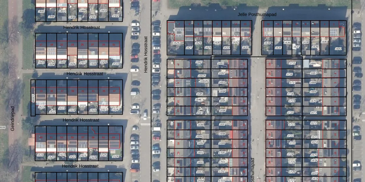 Gebruik de zoekbalk of klik op een perceel voor informatie over de adressen binnen dit perceel.