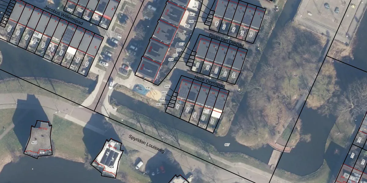 Gebruik de zoekbalk of klik op een perceel voor informatie over de adressen binnen dit perceel.