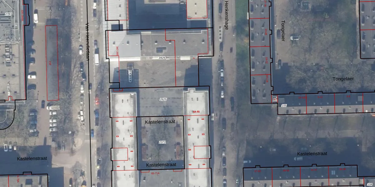 Het adres is gelegen op perceel 2625 in de sectie AK en de kadastrale gemeente Amsterdam. De kadastrale aanduiding is aldus ASD30-AK-2625. De oppervlakte van het perceel is 2355 m². Dat is groter dan gemiddeld in Amsterdam, waar de gemiddelde perceeloppervlakte op 1333,53 m² ligt. De grootste perceeloppervlakte in de kadastrale gemeente is 22,2 ha. De kleinste oppervlakte bedraagt 0 m². Er zijn 57 adressen aanwezig op het perceel. De huidige grenzen van het perceel zijn digitaal in de Basisregistratie Kadaster (BRK) geregistreerd op 28-10-2009.
