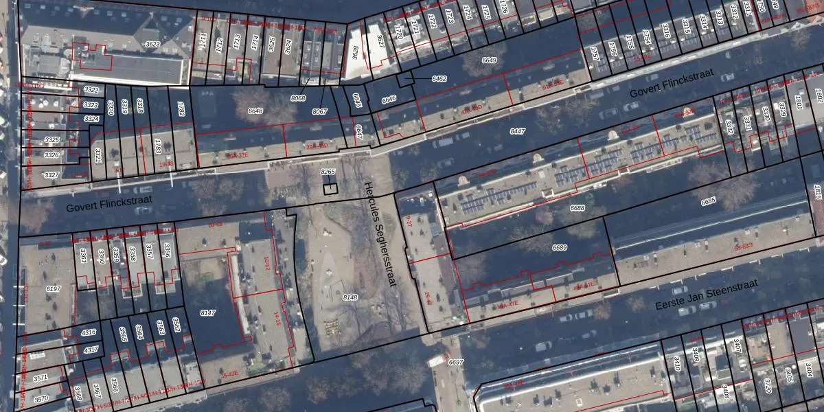 Het perceel waarop Hercules Seghersstraat 11 staat heeft een oppervlakte van 996 m². Dit is een groot perceel. De perceeloppervlakte wordt geregistreerd door het Kadaster. Gedetailleerde informatie over de maten van dit perceel kunt u vinden in het rapport Kadastrale kaart met maatvoering van Hercules Seghersstraat 11.