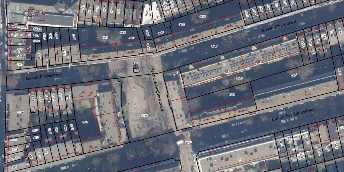 Het perceel waarop Hercules Seghersstraat 17 staat heeft een oppervlakte van 996 m². Dit is een groot perceel. De perceeloppervlakte wordt geregistreerd door het Kadaster. Gedetailleerde informatie over de maten van dit perceel kunt u vinden in het rapport Kadastrale kaart met maatvoering van Hercules Seghersstraat 17.