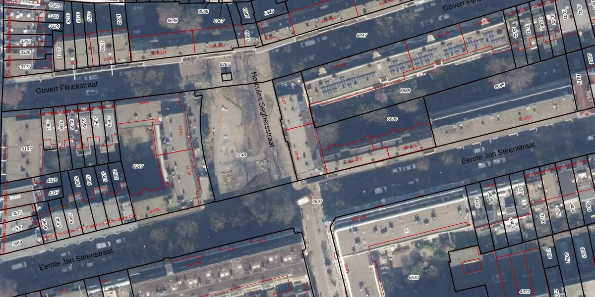 Het perceel waarop Hercules Seghersstraat 35 staat heeft een oppervlakte van 996 m². Dit is een groot perceel. De perceeloppervlakte wordt geregistreerd door het Kadaster. Gedetailleerde informatie over de maten van dit perceel kunt u vinden in het rapport Kadastrale kaart met maatvoering van Hercules Seghersstraat 35.