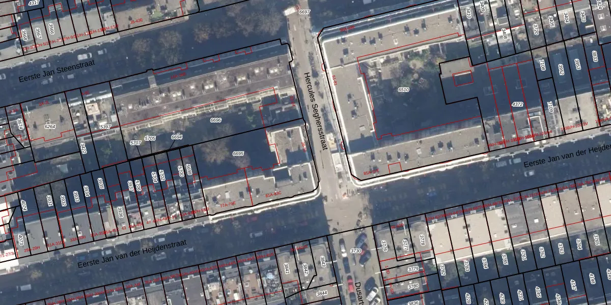 Het perceel waarop Hercules Seghersstraat 36 staat heeft een oppervlakte van 896 m². Dit is een groot perceel. De perceeloppervlakte wordt geregistreerd door het Kadaster. Gedetailleerde informatie over de maten van dit perceel kunt u vinden in het rapport Kadastrale kaart met maatvoering van Hercules Seghersstraat 36.