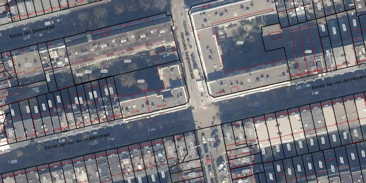 Hercules Seghersstraat 42 is gelegen op kadastraal perceel ASD14R6695. Deze kadastrale aanduiding is uniek en wordt gebruikt door het Kadaster om eigendomsrechten en andere zakelijke rechten vast te leggen. Het perceel maakt onderdeel uit van de kadastrale gemeente Amsterdam.
