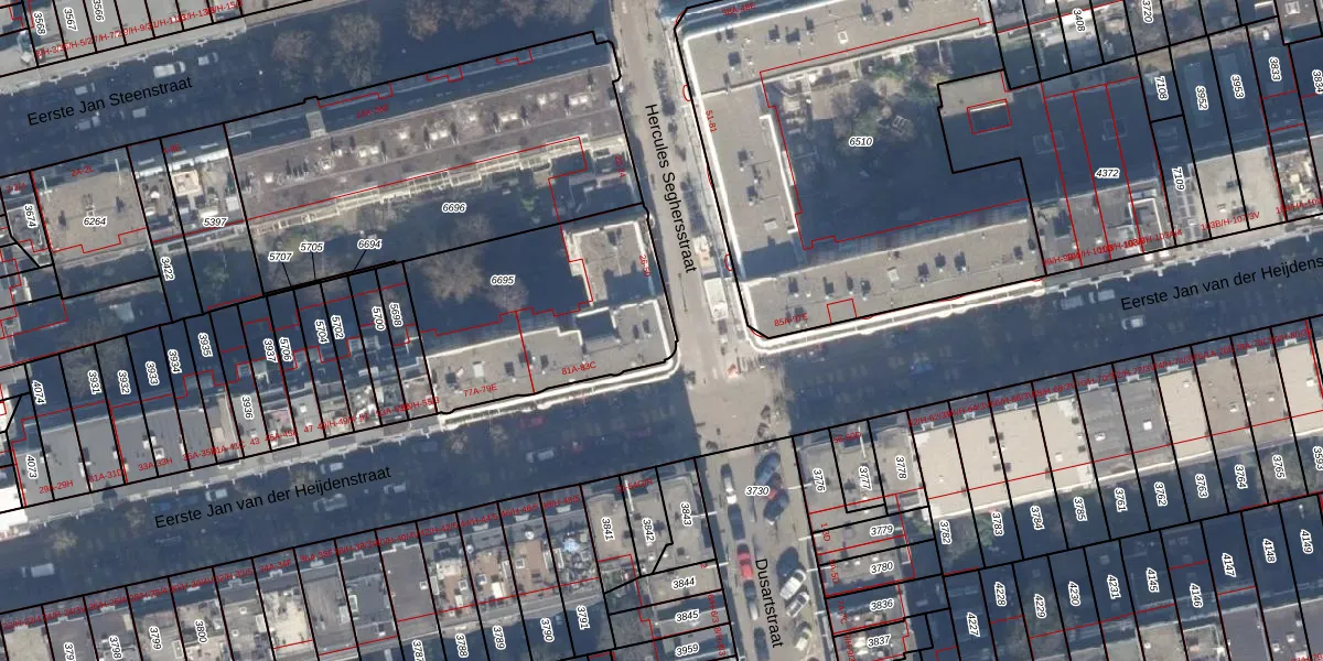 Het perceel waarop Hercules Seghersstraat 44 staat heeft een oppervlakte van 896 m². Dit is een groot perceel. De perceeloppervlakte wordt geregistreerd door het Kadaster. Gedetailleerde informatie over de maten van dit perceel kunt u vinden in het rapport Kadastrale kaart met maatvoering van Hercules Seghersstraat 44.