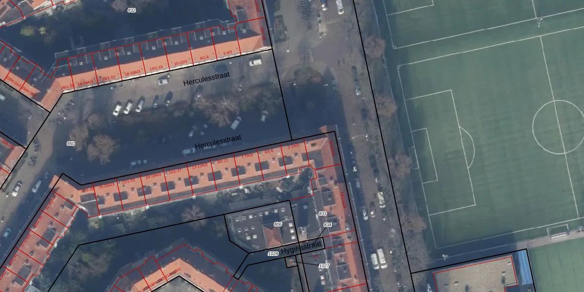 Het perceel waarop Herculesstraat 1-A-2 staat heeft een oppervlakte van 6807 m². Dit is een zeer groot perceel. De perceeloppervlakte wordt geregistreerd door het Kadaster. Gedetailleerde informatie over de maten van dit perceel kunt u vinden in het rapport Kadastrale kaart met maatvoering van Herculesstraat 1-A-2.