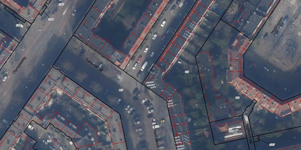 Het perceel waarop Herculesstraat 111-2 staat heeft een oppervlakte van 4961 m². Dit is een zeer groot perceel. De perceeloppervlakte wordt geregistreerd door het Kadaster. Gedetailleerde informatie over de maten van dit perceel kunt u vinden in het rapport Kadastrale kaart met maatvoering van Herculesstraat 111-2.