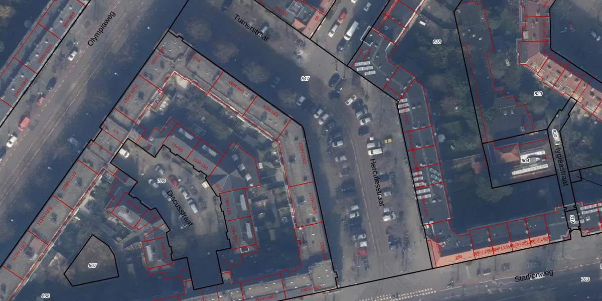 Het perceel waarop Herculesstraat 122-2 staat heeft een oppervlakte van 6395 m². Dit is een zeer groot perceel. De perceeloppervlakte wordt geregistreerd door het Kadaster. Gedetailleerde informatie over de maten van dit perceel kunt u vinden in het rapport Kadastrale kaart met maatvoering van Herculesstraat 122-2.