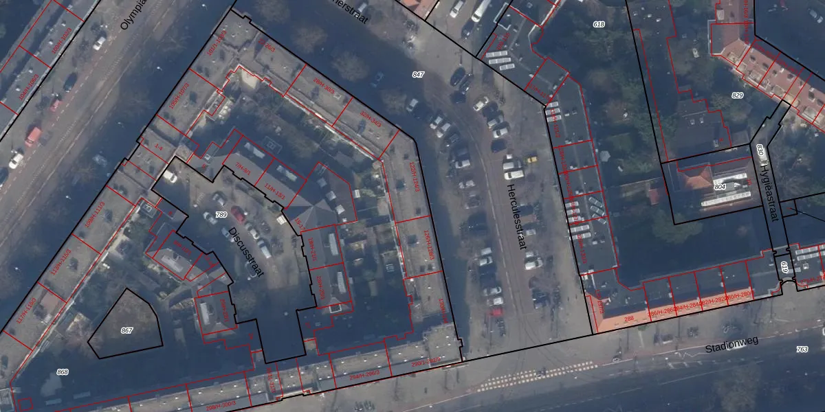 Het perceel waarop Herculesstraat 124-3 staat heeft een oppervlakte van 6395 m². Dit is een zeer groot perceel. De perceeloppervlakte wordt geregistreerd door het Kadaster. Gedetailleerde informatie over de maten van dit perceel kunt u vinden in het rapport Kadastrale kaart met maatvoering van Herculesstraat 124-3.