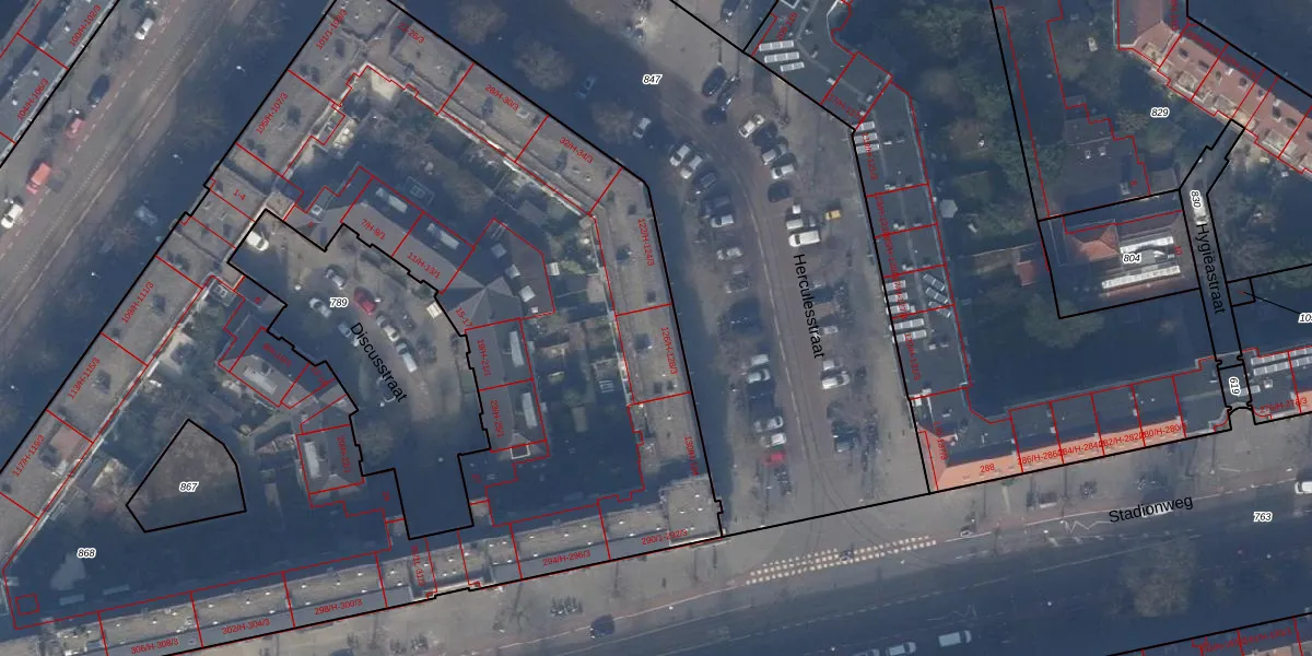 Het perceel waarop Herculesstraat 126-3 staat heeft een oppervlakte van 6395 m². Dit is een zeer groot perceel. De perceeloppervlakte wordt geregistreerd door het Kadaster. Gedetailleerde informatie over de maten van dit perceel kunt u vinden in het rapport Kadastrale kaart met maatvoering van Herculesstraat 126-3.