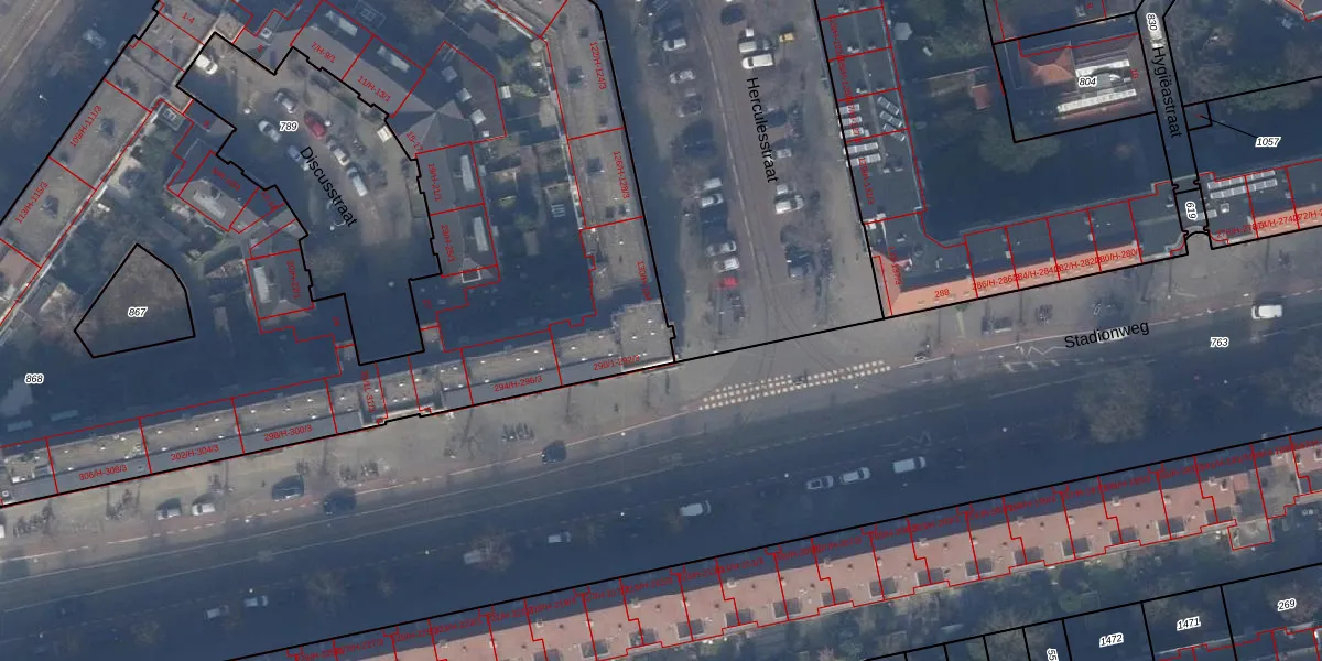 Herculesstraat 134 is gelegen op kadastraal perceel ASD24AC868. Deze kadastrale aanduiding is uniek en wordt gebruikt door het Kadaster om eigendomsrechten en andere zakelijke rechten vast te leggen. Het perceel maakt onderdeel uit van de kadastrale gemeente Amsterdam.