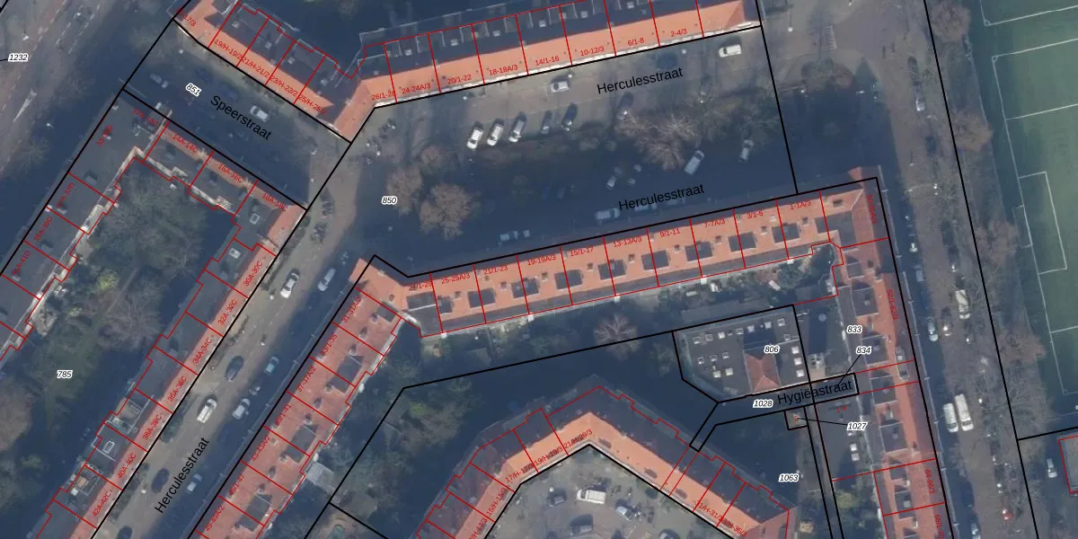 Het perceel waarop Herculesstraat 19-A-3 staat heeft een oppervlakte van 6807 m². Dit is een zeer groot perceel. De perceeloppervlakte wordt geregistreerd door het Kadaster. Gedetailleerde informatie over de maten van dit perceel kunt u vinden in het rapport Kadastrale kaart met maatvoering van Herculesstraat 19-A-3.