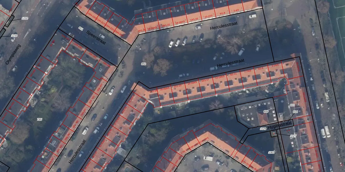Herculesstraat 23 is gelegen op kadastraal perceel ASD24AC833. Deze kadastrale aanduiding is uniek en wordt gebruikt door het Kadaster om eigendomsrechten en andere zakelijke rechten vast te leggen. Het perceel maakt onderdeel uit van de kadastrale gemeente Amsterdam.