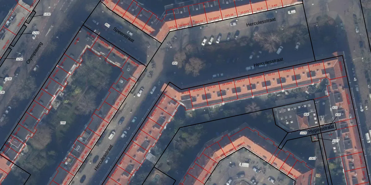 Het perceel waarop Herculesstraat 27-1 staat heeft een oppervlakte van 6807 m². Dit is een zeer groot perceel. De perceeloppervlakte wordt geregistreerd door het Kadaster. Gedetailleerde informatie over de maten van dit perceel kunt u vinden in het rapport Kadastrale kaart met maatvoering van Herculesstraat 27-1.
