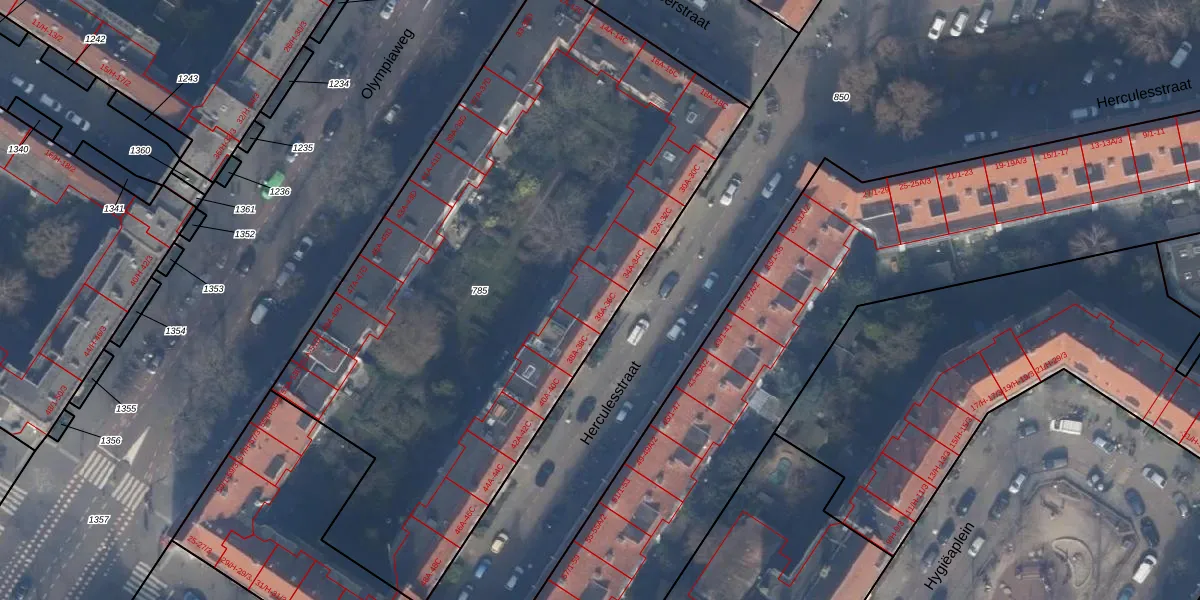 Het perceel waarop Herculesstraat 36-B staat heeft een oppervlakte van 3734 m². Dit is een zeer groot perceel. De perceeloppervlakte wordt geregistreerd door het Kadaster. Gedetailleerde informatie over de maten van dit perceel kunt u vinden in het rapport Kadastrale kaart met maatvoering van Herculesstraat 36-B.