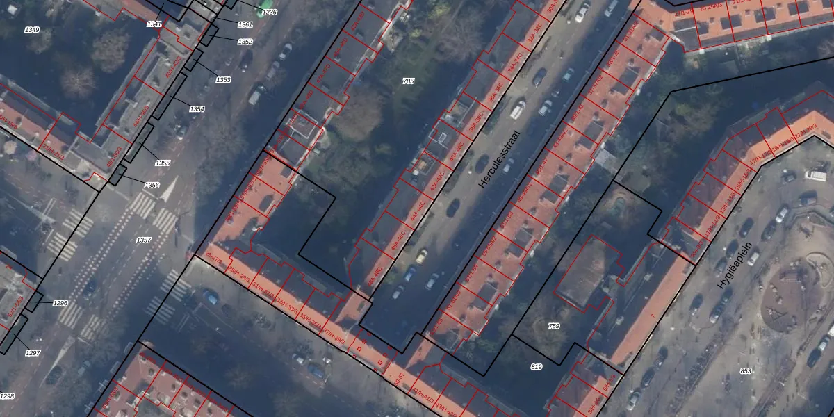 Het perceel waarop Herculesstraat 44-C staat heeft een oppervlakte van 3734 m². Dit is een zeer groot perceel. De perceeloppervlakte wordt geregistreerd door het Kadaster. Gedetailleerde informatie over de maten van dit perceel kunt u vinden in het rapport Kadastrale kaart met maatvoering van Herculesstraat 44-C.