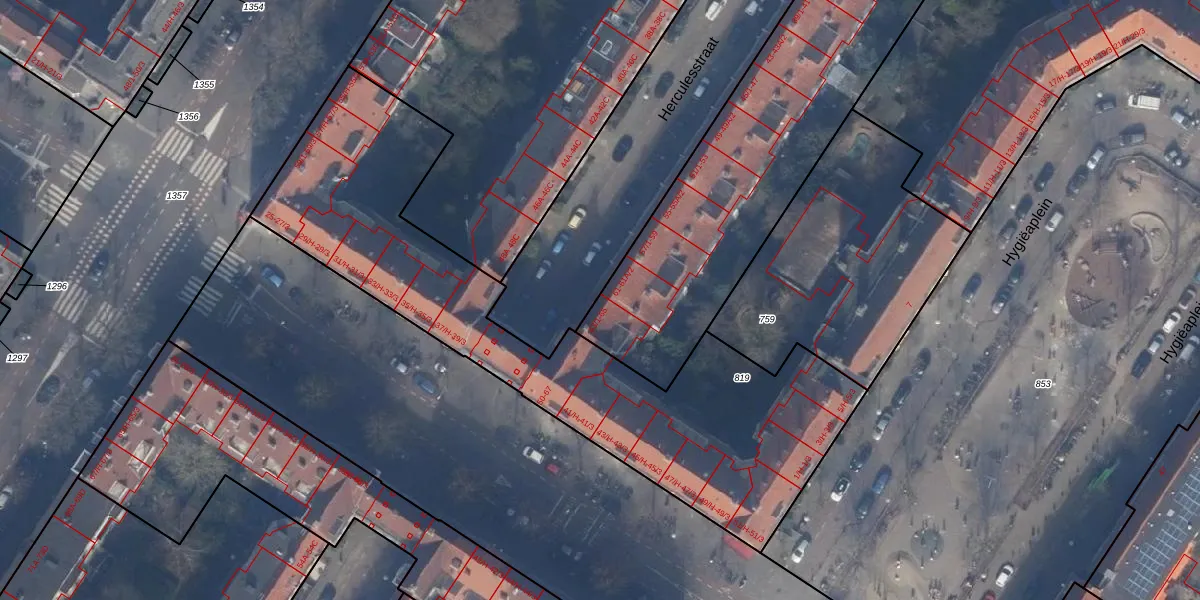 Het perceel waarop Herculesstraat 63-2 staat heeft een oppervlakte van 6807 m². Dit is een zeer groot perceel. De perceeloppervlakte wordt geregistreerd door het Kadaster. Gedetailleerde informatie over de maten van dit perceel kunt u vinden in het rapport Kadastrale kaart met maatvoering van Herculesstraat 63-2.