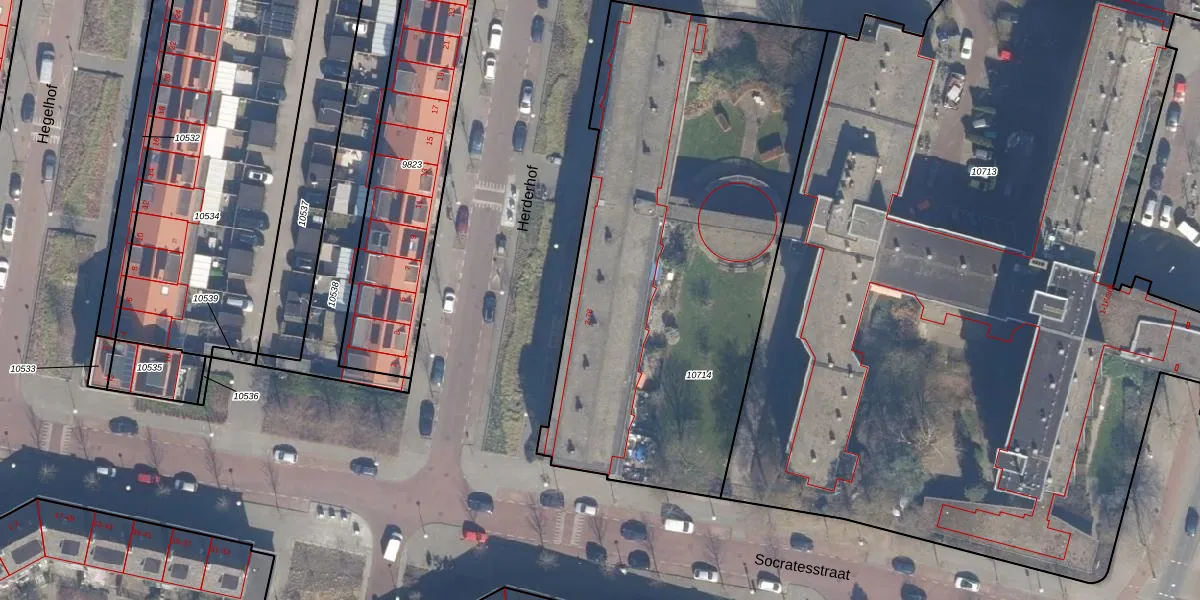 Het perceel waarop Herderhof 46 staat heeft een oppervlakte van 2610 m². Dit is een zeer groot perceel. De perceeloppervlakte wordt geregistreerd door het Kadaster. Gedetailleerde informatie over de maten van dit perceel kunt u vinden in het rapport Kadastrale kaart met maatvoering van Herderhof 46.