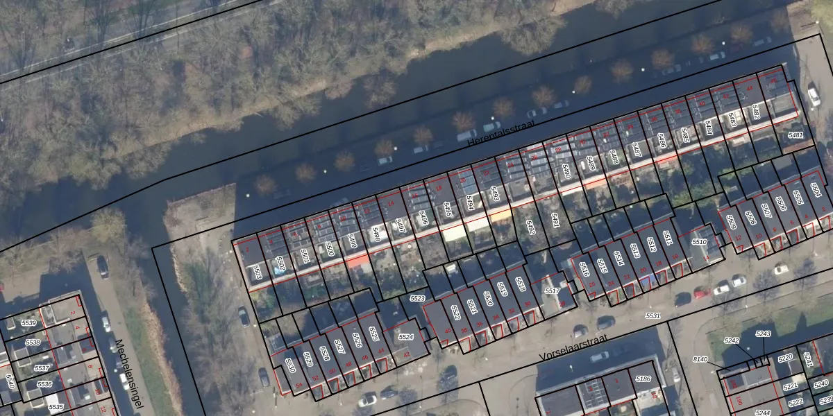 Herentalsstraat 16 is gelegen op kadastraal perceel STN02E5496. Deze kadastrale aanduiding is uniek en wordt gebruikt door het Kadaster om eigendomsrechten en andere zakelijke rechten vast te leggen. Het perceel maakt onderdeel uit van de kadastrale gemeente Sloten Noord-Holland.