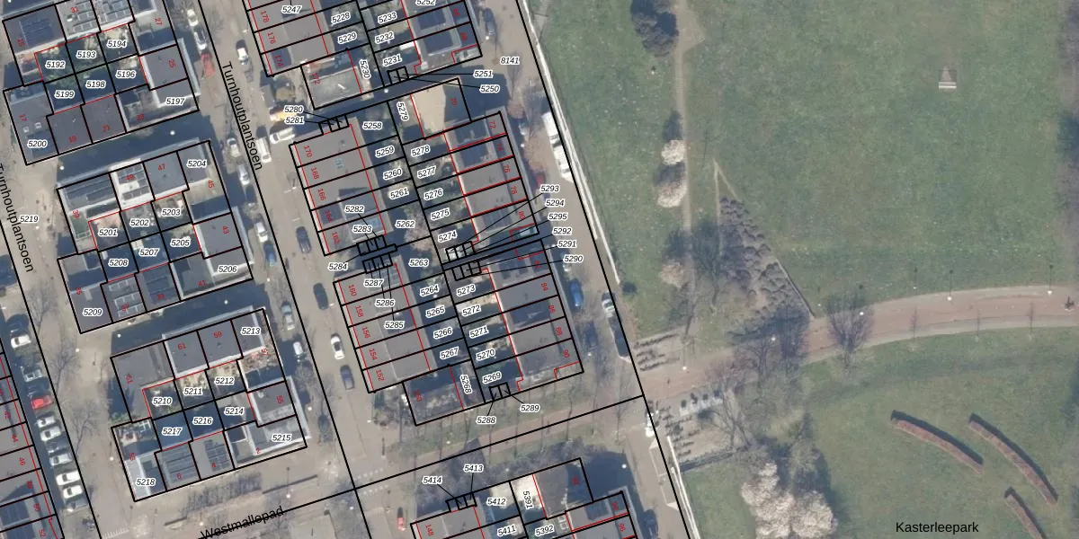 Gebruik de zoekbalk of klik op een perceel voor informatie over de adressen binnen dit perceel.